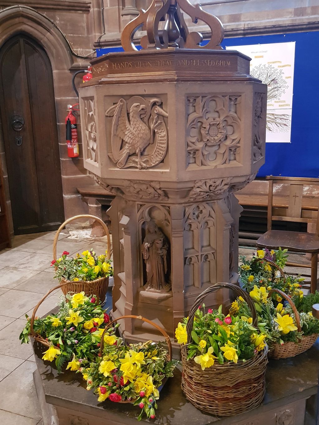 Mothering Sunday. Father Freddie and Puddles joined us for the service